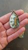 One-of-a-kind teardrop earrings featuring striking ocean jasper stones, Captured® in oxidized silver frames with 18k gold ball rivets and finished with 18k gold French hook ear wires. Though called “ocean” jasper, each stone reveals an earthy mosaic of a goldenrod, peach, and forest green pattern against a milky white backdrop.